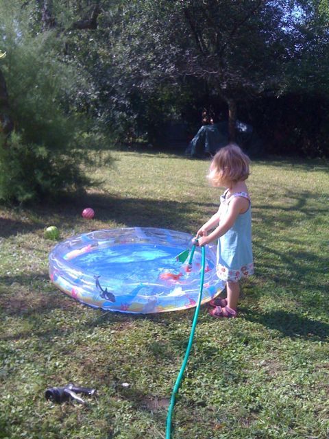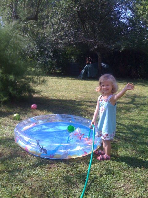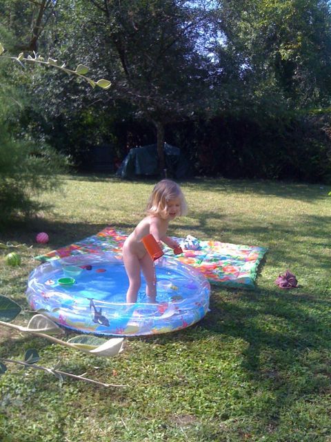A la maison Les vacances à la maison 1 août 2011 alex Quelle aventure pour installer la petite piscine ! Tout cela pour y rester 1/4 d’h… Maman est ravie !!!