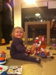 Visite chez les Tocchet. Les grandes jouent aux princesses, et salomé (doud’) découvre… Le monsieur patAAAte d’axelle. C’est l’amour fou… Il neige en Belgique, mais on tente tout de même une sortie !